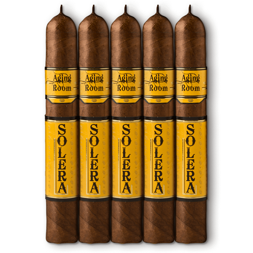 Crafted in the Dominican Republic, the Aging Room Solera Sun Grown Festivo cigar is a high-quality, hand-rolled cigar of excellence. This unique short robusto, measuring 4.75 x 52, combines tobaccos from various harvests that have been aged together in a bale for a minimum of one year. Through this meticulous process, a fusion of diverse flavors occurs long before the cigars are even made. From the initial puff to the final draw, the palate will be delighted by a delightful aroma of sweet cedar and hints of pepper, wood, honey, and a touch of sweet chocolate on the finish. Don't wait any longer, order a 5-pack now and indulge in the exquisite taste of this gourmet cigar from Aging Room.