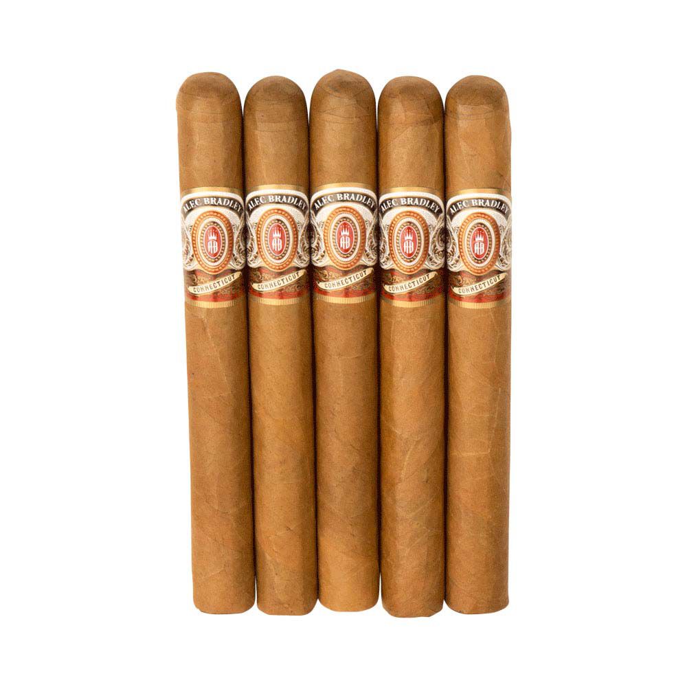 The Alec Bradley Connecticut cigars are a mild expression of the brand, featuring a mix of aged Honduran and Nicaraguan tobaccos beneath a golden Ecuadorian Connecticut wrapper. Alec Rubin, the brand's creator, wanted to make a flavorful yet smooth smoke, which he achieved with a 90 rating. With impressive construction and a perfect burn, the cigar offers creamy, woody, leathery tastes with a light spiciness. This mellow-medium blend will satisfy fans of milder smokes, as well as experienced smokers looking for a gentle smoke to start the day. Get a box of 20 from 1st Class Cigar and enjoy Alec Bradley's Connecticut-style cigars.