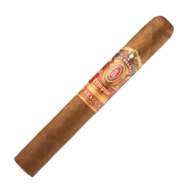 Alec Bradley Tempus Nicaragua Toro cigars boast a 94 rating due to the exceptional blend of Nicaraguan and Cuban seed tobaccos. The cigars feature a deep reddish-brown wrapper that is luxuriously smooth to the touch and provides a richness to the overall aroma of the cigar. The filler tobaccos have been aged and harvested from the three premier growing regions in Nicaragua: Jalapa, Condega, and Esteli. When lit, the cigars offer a medium to full-bodied smoke with hints of dark roast coffee, leather, spices, and cedar. Order a box of 24 from 1st Class Cigar to experience the award-winning flavor of Alec Bradley Tempus Nicaragua Toro cigars.