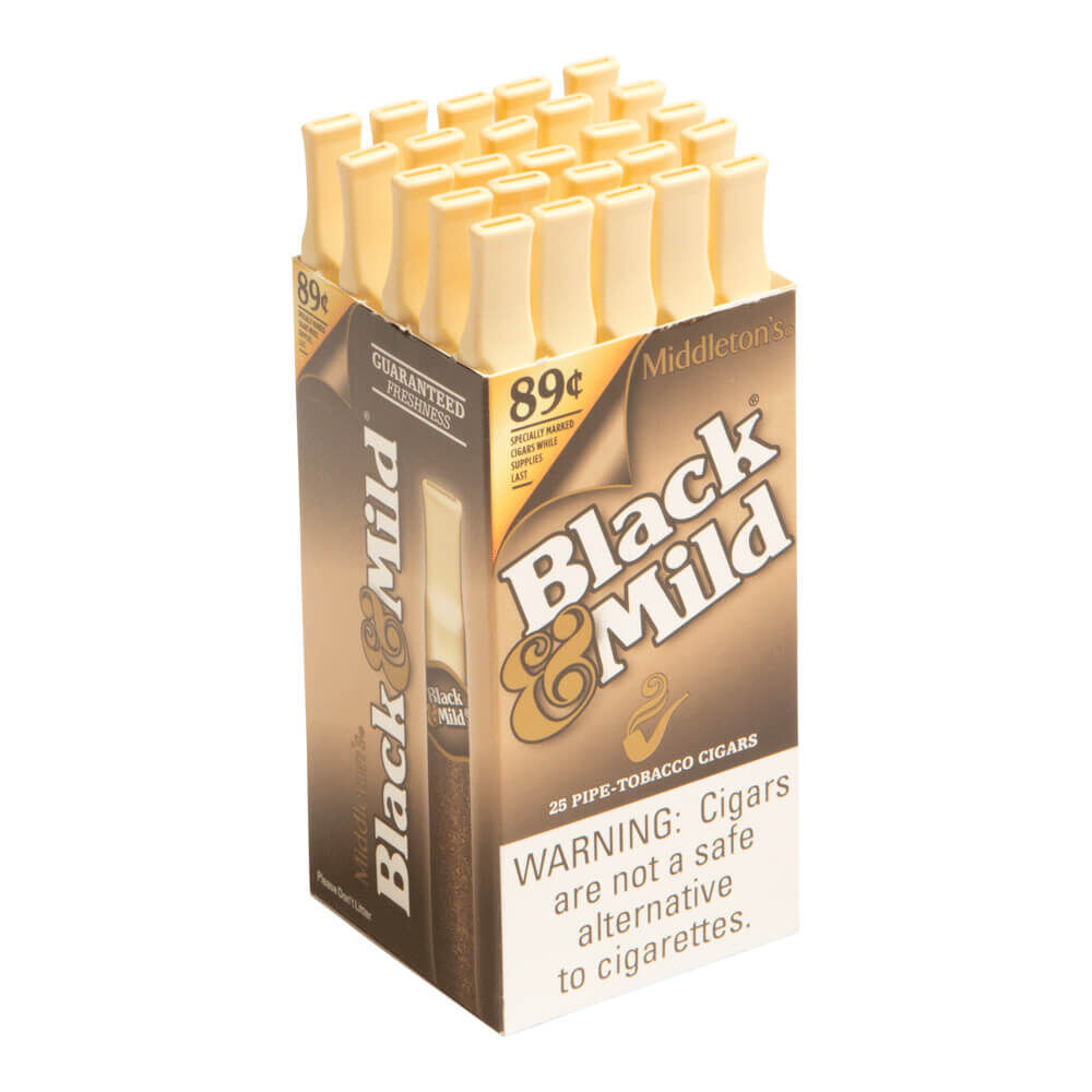 Middleton Company, which has been producing high-quality pipe tobaccos since 1856, manufactures Black Mild Cigars Original. This mellow blend of Virginia and Cavendish tobaccos provides a delicate sweetness, making it the ideal choice for those who appreciate the flavor of tobacco without the added flavoring. Black Mild Original allows cigar and pipe smokers alike to enjoy their favorite smoke without the hassle of cleaning, scraping, filling, and tamping a pipe. Obtain a box of 25 from 1st Class Cigar, and you'll have a delicious 5 x 30ring cigar to enjoy during lunch, errands, or any other situation.