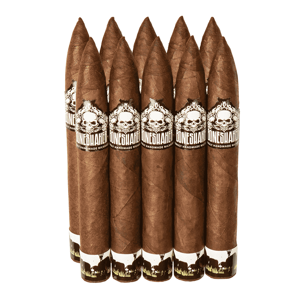 A perfect complement to the original Boneshaker blend, Boneshaker Boneyard Cigars is a powerful product made at the renowned NACSA factory in Nicaragua. Not for the faint of heart, this Nicaraguan puro blend of Cuban seed tobaccos is full of complex, robust flavors like white pepper, espresso, wood, earthiness, and a touch of cinnamon. Both new and experienced cigar aficionados will enjoy these reasonably priced treats after a hearty meal or a few drinks.