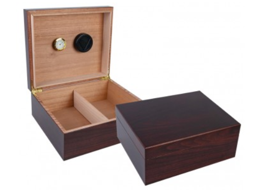 25-50 Count Cherry Glasstop Humidor with Divider, Humidifier & External Hygrometer
