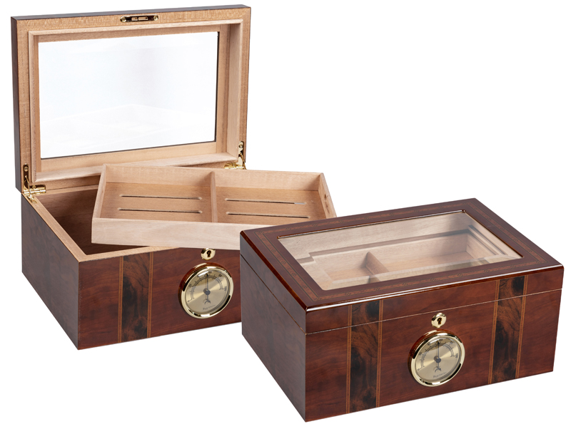 120 Ct. Lacquer Humidor w/ Beveled Glass & Sleek Digital Hygrometer w/ Calibration