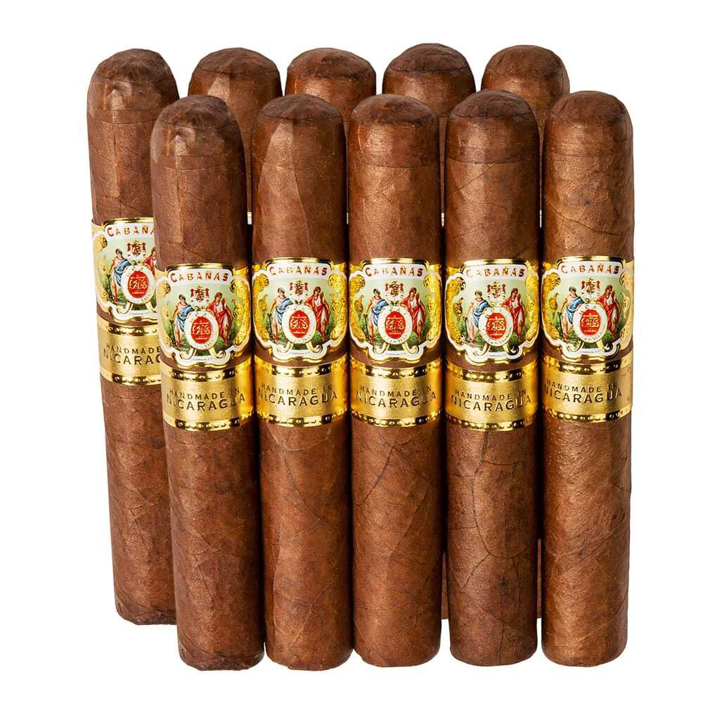 The cigars of Cabanas Robusto Cabaas, made by master blender Don Pepin Garcia, are among the oldest Cuban Heritage brands still in existence. They are carefully crafted at the My Father factory in Nicaragua, using Cubanseed Nicaraguan binder and long filler tobaccos grown on the Garcia family farms. The cigars feature two binders of Jalapa and Estel leaves, topped with a clay red Habano Rosado wrapper. Each puff offers medium to full bodied flavors of coffee, molasses, roasted peanuts and spice. You can purchase a 10pack of these affordable cigars from 1st Class Cigar to taste the skillful craftsmanship of the artisans at My Father.