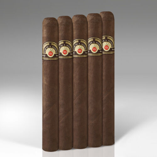 The Flor de A. Allones Maximo premium cigar is an impressive Havanastyle smoke, featuring a robust blend of Honduran and Nicaraguan longfiller tobaccos and an Ecuador Sumatra EMS wrapper leaf. It is available in convenient 5-packs for easy portability, as well as in cedar chests of 25 uncellophaned cigars. With a full-bodied strength profile, the cigar offers a spicy and robust smoking experience with a long finish. Smokers looking for a substantial and strong handmade cigar will find the Flor de Allones Maximo a reliable and cost-effective choice in a large size and style.
