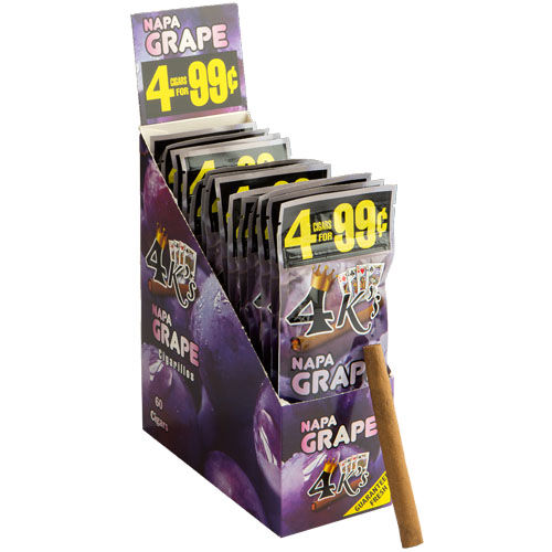 A combination of juicy Napa Grape and high-grade Central American Tobaccos come together to make an absolutely delightful smoking experience. When you wish to take a break from your usual cigarette, Good Times 4 Ks Cigarillos are the perfect option! They come in 15 packs of 4, so you get a total of 60 cigarillos.