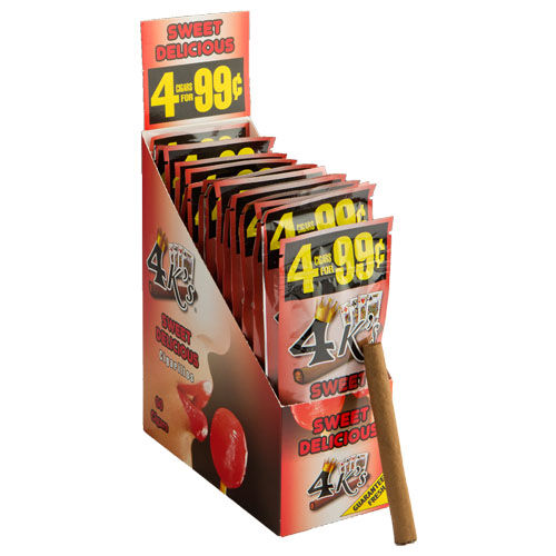 The 4 Ks Cigarillos are well-known for their combination of Central American tobacco and a variety of delicious fruit flavors. Their Sweet Delicious cigars are an ideal choice for both novice and experienced cigar smokers, with 15 packs of four cigarillos, a total of 60.