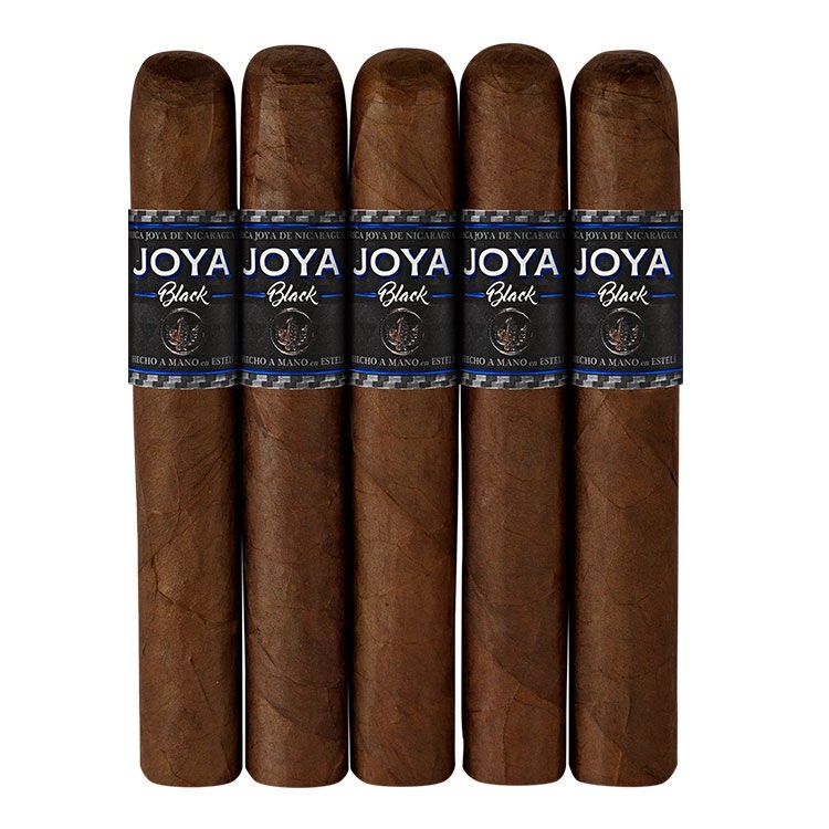 The Joya Black Toro comes in sets of 5 and is made up of mature Nicaraguan binder and fillers concealed by a rich and indulgent Mexican wrapper. This luxurious and rich sequel to the popular Joya Red captures the intricate and rich flavors of dark cocoa, bing cherries, and subtle hints of dark espresso and cedar. It is a top choice for those who appreciate a full-bodied maduro, and adds to the already esteemed Joya collection.
