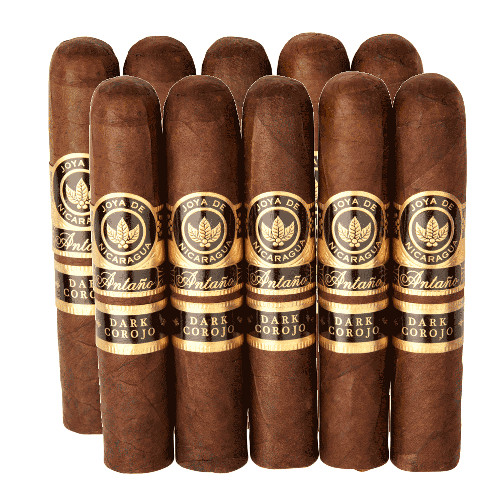 The Joya de Nicaragua Antano Dark Corojo Azarosa cigars are made with a Nicaraguan filler blend that is aged for three years, using 75% Ligero tobacco. Grown in the sunniest areas of the plant, Ligero leaves have a bolder and more intense taste. This aging and generous use of Ligero tobacco gives this 4.5 x 52 premium a medium to full body, with a smooth finish. Each puff of this well-rolled cigar releases a rich taste of earth, chocolate, cocoa, roasted nuts and hints of black cherry. Get a 10 pack from 1st Class Cigar and discover why the Joya de Nicaragua brand portfolio is so highly acclaimed.