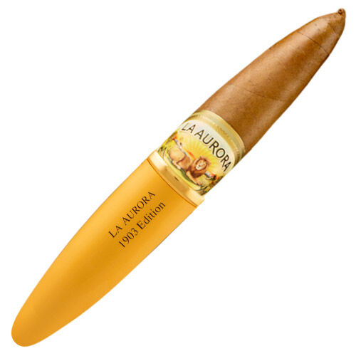 La Aurora Preferidos Gold cigars are constructed using the most excellent Dominican long filler tobaccos expertly rolled in a superior, Dominican-grown Corojo wrapper. The outcome is a full-bodied stogie that is flawlessly balanced with deep flavors of cedar, leather, and warm cashews accented with a fragile spicy undertone. These handsome cigars measure a generous 5.00 x 54 and are contained in an 8-cigar box of exquisitely created gleaming aluminum tubes. Gold is an extravagant smoke that will definitely gratify any keen cigar aficionado.