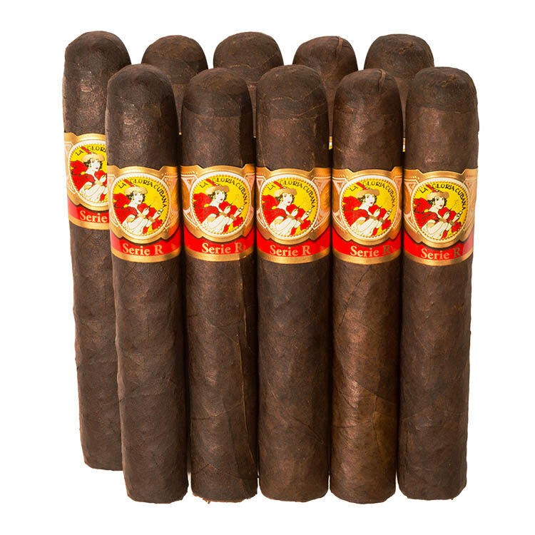 The La Gloria Cubana Serie R No. 5 Maduro cigars are crafted by hand in the Dominican Republic using a combination of Nicaraguan ligero and Dominican Olor filler tobaccos. These tobaccos are aged for longer than the original La Gloria line, resulting in a more potent blend. The cigars are then wrapped in a dark Connecticut Broadleaf wrapper, which adds a touch of sweetness to the already rich and full-bodied flavor profile of chocolate, earth, espresso, and cream. These exceptional cigars, created by the renowned Ernesto Carrillo, are distinguished by their substantial size of 5 x 54, providing ample time to savor their intensely delicious flavors. This variety is a special indulgence for experienced cigar enthusiasts, and it is now conveniently available in affordable packs of 10 for you to sample and enjoy.