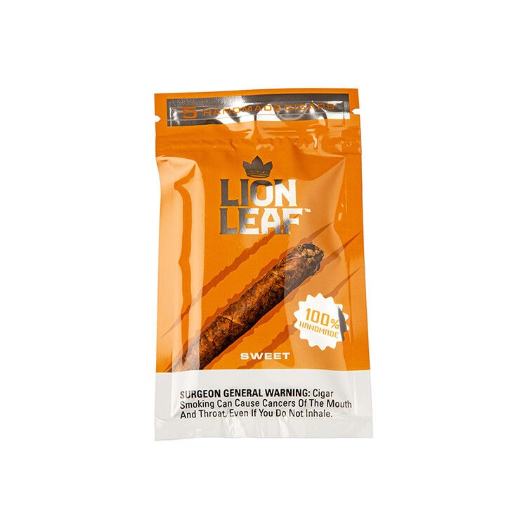 Altadis U.S.A., a leading premium cigar company in the United States, produces Lion Leaf Sweet cigars. This well-known company is responsible for iconic brands such as Romeo y Julieta, Montecristo, and H. Upmann. Each Lion Leaf Sweet cigar is expertly handcrafted in Honduras, using carefully selected tobacco leaves grown in the fertile soils of Central America, ensuring a truly authentic premium cigar smoking experience. These mini cigars offer a smooth and creamy taste with a hint of sweetness, making them perfect for everyday activities like running errands, doing yard work, or taking a quick 15-minute smoking break during a busy workday. The best part is that these affordable little cigars can be enjoyed all day without breaking the bank. You can find Lion Leaf Sweet cigars here at JR, conveniently packaged in a colorful and airtight resealable pouch of five, with five cigars in each pouch, eliminating the need for a humidor.