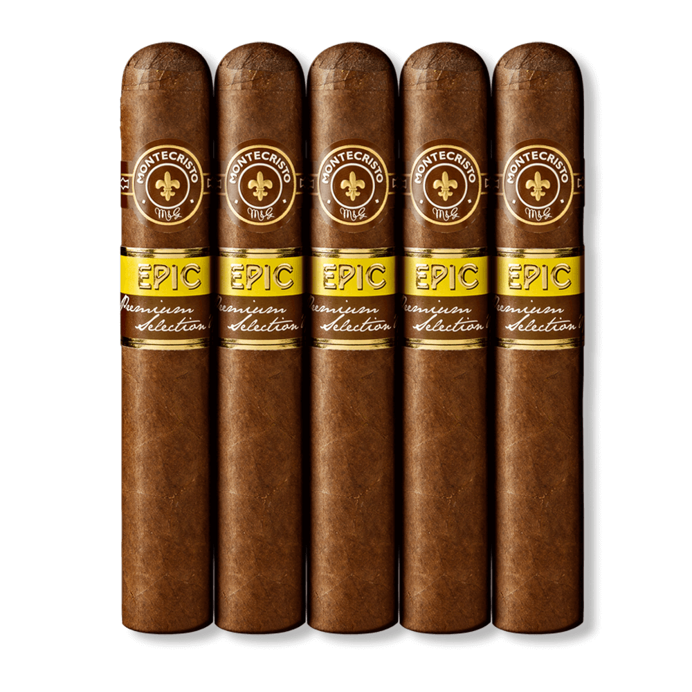 The Montecristo Epic Magnum is an exquisite, high-quality cigar crafted from a carefully selected combination of aged Nicaraguan and Dominican long filler tobaccos, encased in a unique and flavorful Ecuador Habano wrapper. Upon lighting, one can anticipate a strong and bold smoking experience, reminiscent of traditional Cuban cigars. The flavors are complex and abundant, with hints of chocolate, coffee, caramel, and fruit, complemented by a pleasant and warm aroma. This luxurious cigar can now be purchased in convenient 5-packs, allowing you to indulge without committing to a full box.