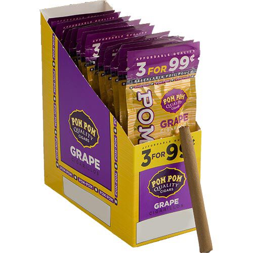 The Pom Pom Grape cigarillo offers a delightful combination of creamy and mellow tobacco with a burst of juicy grape flavor. Perfect for a quick break from a hectic schedule, this high-quality cigarillo is packed in 15 foil-wrapped packs, each containing 3 cigarillos.