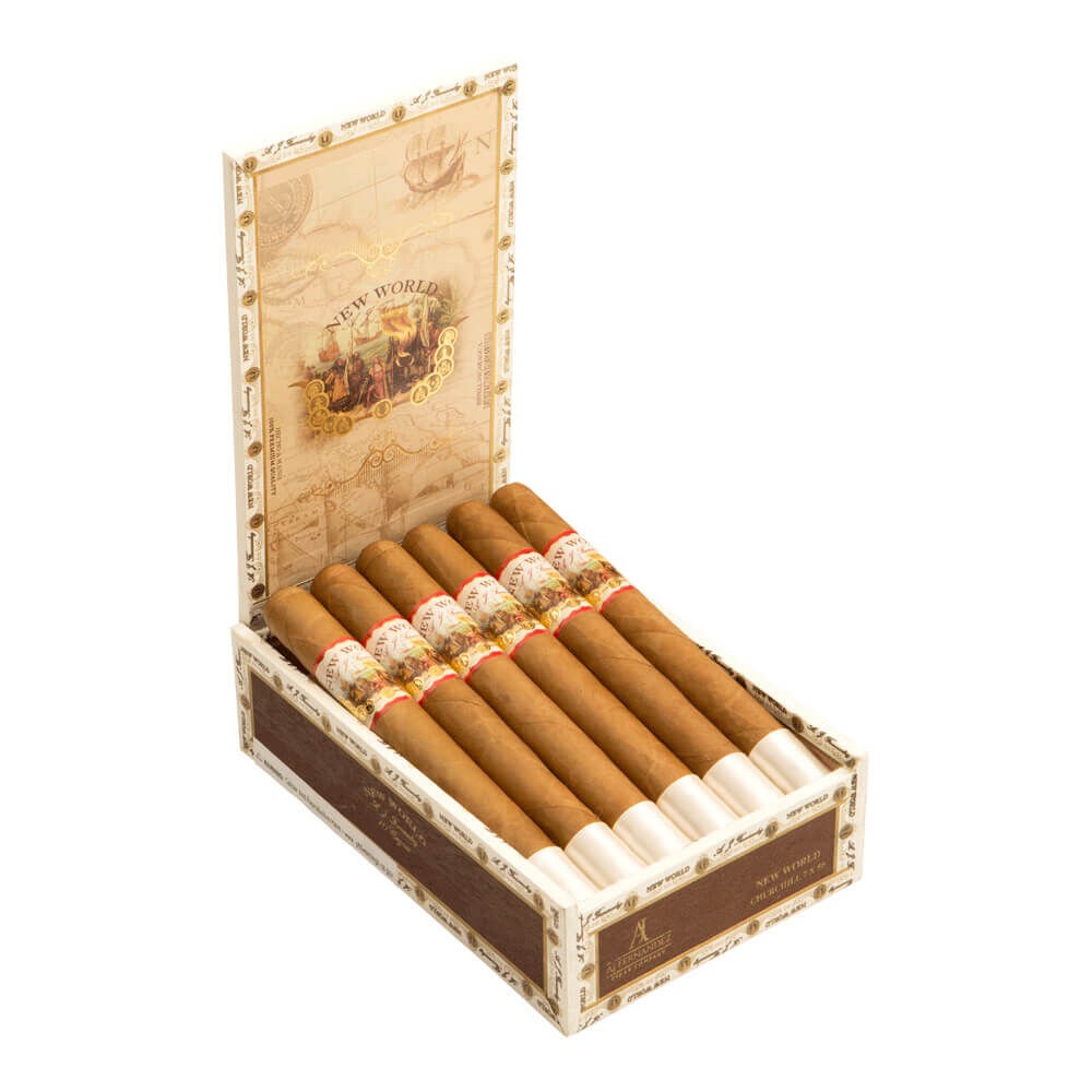 is the latest addition to the New World line by renowned cigar maker AJ Fernandez. The latest addition to AJ Fernandez's New World collection is the AJ Fernandez New World Connecticut Churchill 10ct, a 7x55 cigar created by the well-known cigar maker.| Origin: | Nicaragua | Strength: | Full |