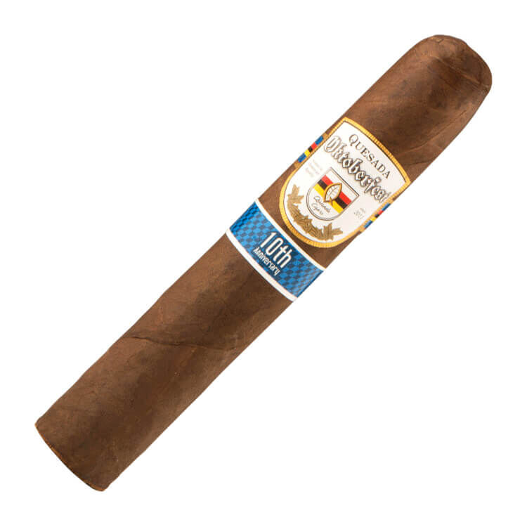 To commemorate a decade of success, the Quesada Oktoberfest 10th Anniversary Uber cigars were specifically crafted to complement the classic Mrzenstyle beer, traditionally served during the popular Oktoberfest festivities. Measuring a generous 6.5 x 60, these special cigars are expertly made using premium Dominican binder and long filler tobaccos, topped off with a stunning dark and oily San Andrs Mexican wrapper. Infused with a bold and flavorful combination of earth, wheat, leather, and dark roast coffee, these exquisite cigars are the perfect accompaniment for your beer-drinking pleasure, just as the renowned Quesada Family intended when they first introduced this line in 2011. Indulge in a box of 10 from 1st Class Cigar and honor the unique and exceptional creation of the Quesada Family.