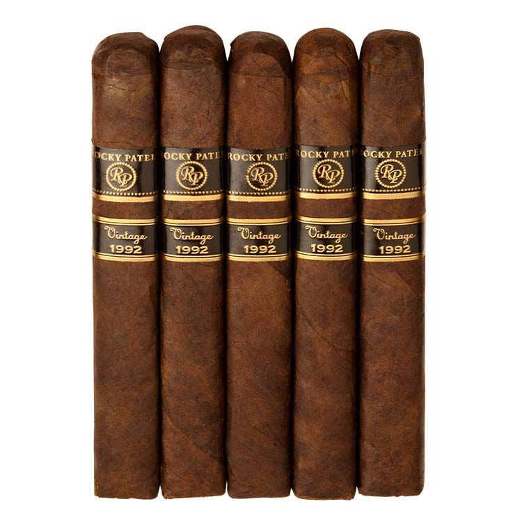 The Rocky Patel 1992 Vintage Robusto can be purchased in sets of five, made in Honduras and featuring an Ecuador Sumatra outer leaf, a Nicaraguan binder, and Dominican and Nicaraguan fillers. Measuring at 5.50x50 and boasting a medium strength, this timeless vintage is an essential addition to any humidor.
