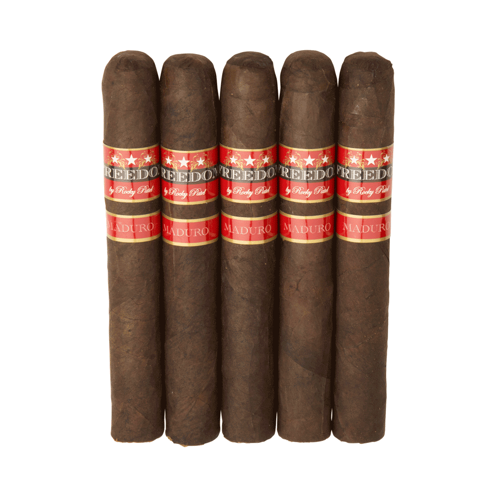 Rocky Patel Freedom Maduro Robusto cigars are a more potent and darker upgrade to the original Freedom collection that was initially unveiled in 2012. Carefully crafted at Rocky's renowned Tavicusa Factory in Estel, Nicaragua, Freedom Maduro Robusto is a Nicaraguan puro blend crafted from 5-year-old Cuban-seed tobaccos, finished off with a lustrous and dark Habano Oscuro wrapper leaf. This medium to full-bodied blend increases the intensity with its strong dark tobacco flavors of dark chocolate, roasted nuts, black pepper, and espresso. Make sure you purchase a cost-effective 5-pack when you purchase your preferred smokes online from 1st Class Cigar.