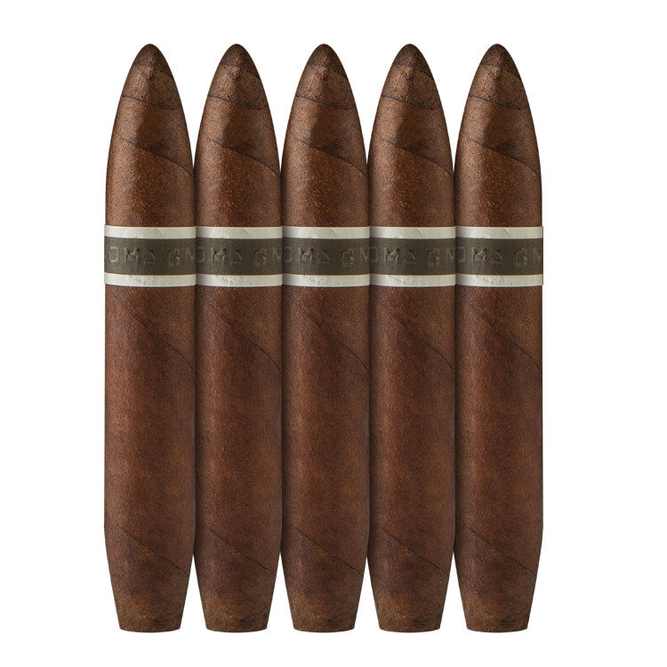Boxes of 24 RoMa Craft CroMagnon Aquitaine Mode 5 cigars are attractive perfecto-shaped sticks with a slick sungrown Ligero wrapper. They are made with older filler tobaccos from Nicaragua's top three growing regions and give off a full-bodied smoke with notes of coffee, leather, oak, and spice, with a sweet natural tobacco aroma. This complex cigar, packed with flavor, is one that you'll want to keep returning to time and again.