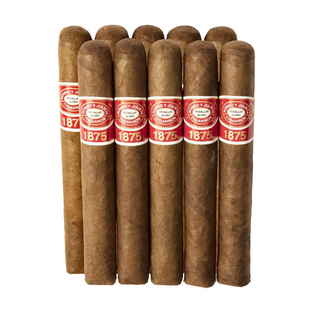 Romeo y Julieta 1875 Exhibicion No.3 is one of the most sought after handmade premium cigars. It is comprised of a Dominican binder and long fillers which are covered by an Indonesian wrapper. This Toro-sized cigar is a classic that embodies its Cuban legacy, boasting the highest quality construction and providing a medium-bodied experience with hints of cedar, cocoa, hazelnuts, and spice. While some brands come and go, this one will remain a staple – pick up a 10-pack today!