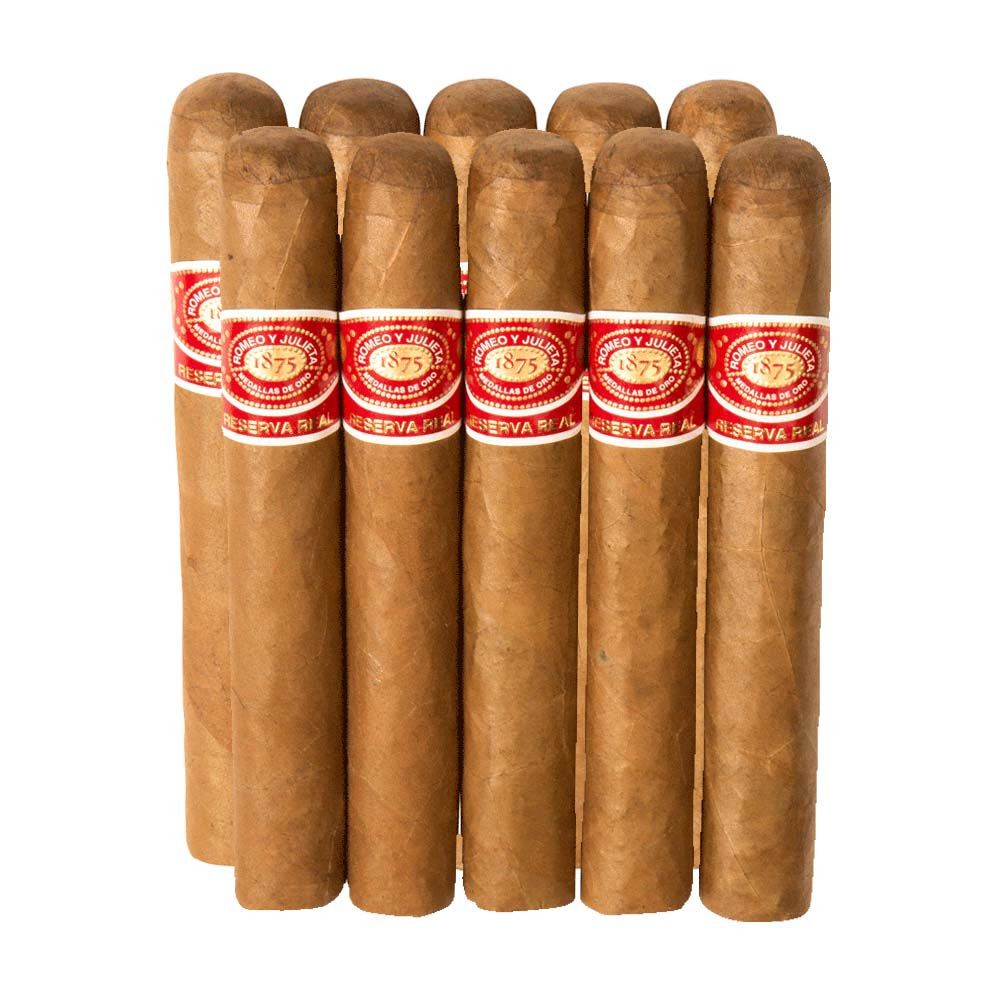 Made in the well-known Altadis USA factory, the Grupo de Maestros has created these 6 inch by 52 ring gauge Romeo y Julieta Reserva Real Toros. These mild-to-medium cigars offer a gentle aroma, with slightly sweet, creamy, and woodsy flavors that end with an elegant finish. As one of the most esteemed brands in the world, these cigars are a delightful indulgence. Packs of 10 are available.