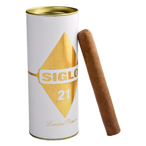 The superior Siglo Limited Reserve No.21 Toro cigars were crafted with care by the esteemed Frank Llaneza. Only the best light-brown Ecuador Cubano wrapper leaves with the finest vein structure were used with a flavorful broadleaf binder and a blend of rich Nicaraguan and Dominican longfiller tobaccos. This blend has a Cubanesque heavier-bodied touch, similar to Hoyo, Punch, Excalibur, El Rey del Mundo, and other creations of Llaneza. These Toros have a solid medium to full bodied profile, giving off notes of leather, earth, sweet spice, and dark coffee. If you're looking for a premium quality cigar, add a tin of 8 of these limited edition classics to your cart when you order online at JR.
