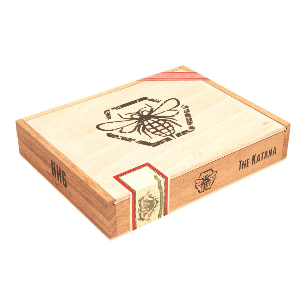 Viaje Honey and Hand Grenades The Katana is a luxurious handmade premium cigar crafted with all Aganorsa leaf tobacco and a rich, dark Criollo wrapper. Owner Andre Farkas named the cigar for its medium to full body and bold black pepper flavor, which is balanced by cocoa, malty sweetness, and delicate spice. At 7 x 48, this Double Corona is strong but still suitable for novice smokers, making it the ideal smoke for any kind of palate. Treat yourself to 25 of these complex and dynamic cigars from 1st Class Cigar, and you'll experience a roller coaster ride of sweet and spicy flavors.