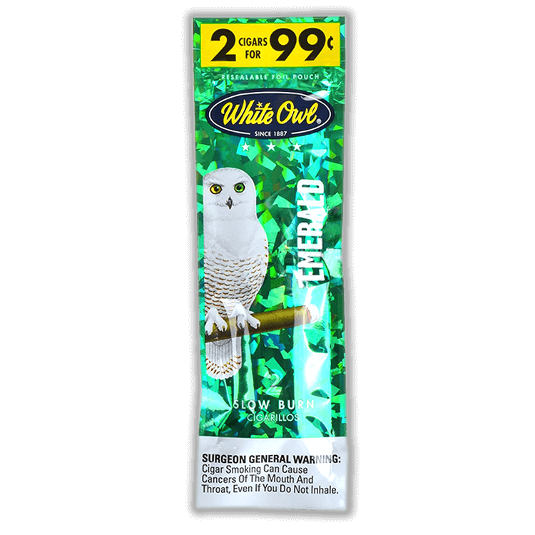 The White Owl Cigarillos Emerald cigars provide a pleasant and fulfilling smoking experience, without the sugary sweetness typically found in the other popular options from this brand. Made with a Caribbean Basin Cuban seed filler and an all-tobacco wrapper, these 4.37 inch, 28-ring cigars offer a natural and subtly sweet flavor and aroma. Perfect for quick breaks or when you're unable to enjoy a full-size cigar, the Emerald is sold in packs of 30 with 2 cigars in each pack.